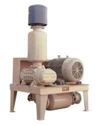 Standard blower assemblies have rotary positive displacement air pumps, electric motor, V-belt drive, guard, intake filter and silencer, discharge silencer, relief valve, gauge and check valve all mounted on an integral steel base.