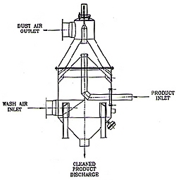 - Elutriators separate the streamers and fines from granular products pneumatically. The conveyed product enters the unit as shown and is cleaned by the wash (counterflow) air.